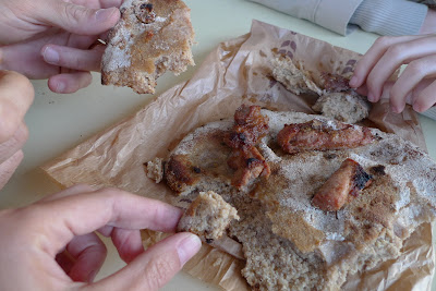 As vivências locais foram o tema dos três dias, que acabaram por festejar o fim do ano lectivo. A par do artesanato local, serviram-se pratos típicos de outros Países e também especialidades locais. O bolo com carne ou sardinhas, cozido em forno de lenha, e os doces de peixe, folhados em forma de sardinha. As sardinhas mais doces que já comemos. Uma escola diferente, sem dúvida, daquela que eu me lembro. Apesar de tudo o que ainda há a melhorar, os nossos filhos têm hoje uma escola bem melhor.