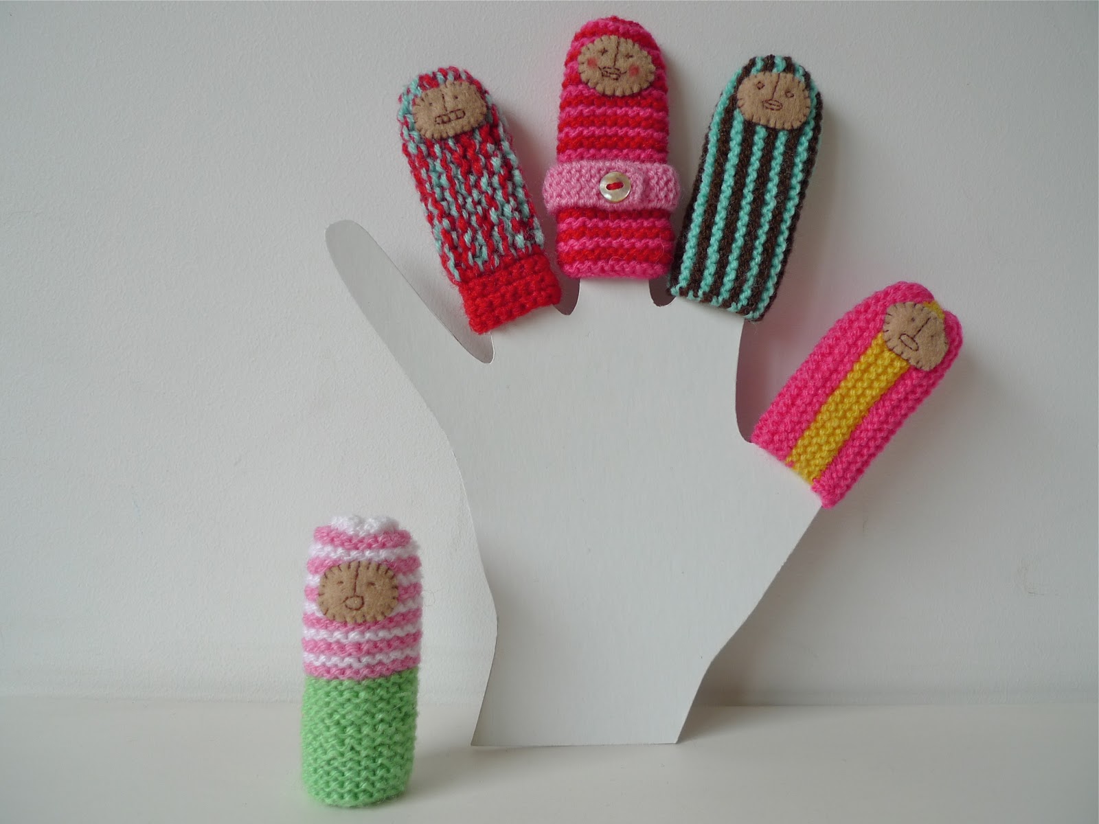 1, 2, 3, 4, 5 Fantoches de dedo em tricot