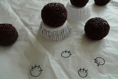 Um pedido de uma sobremesa para uma festa de crianças. Nada melhor que chocolate, numas caixas de papel feitas em casa.
